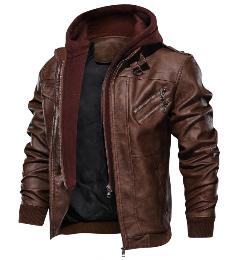 Biker-Lederjacke mit Kapuze
